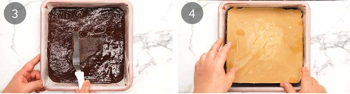 It does not work! Brownie batter is too soft to spread the peanut butter across the surface, and the brownie batter is too thick to spread over the peanut butter! 🤯