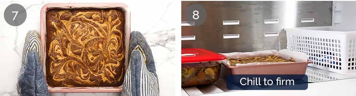 - Line pan again with baking paper, with overhang so you can lift the brownie out.