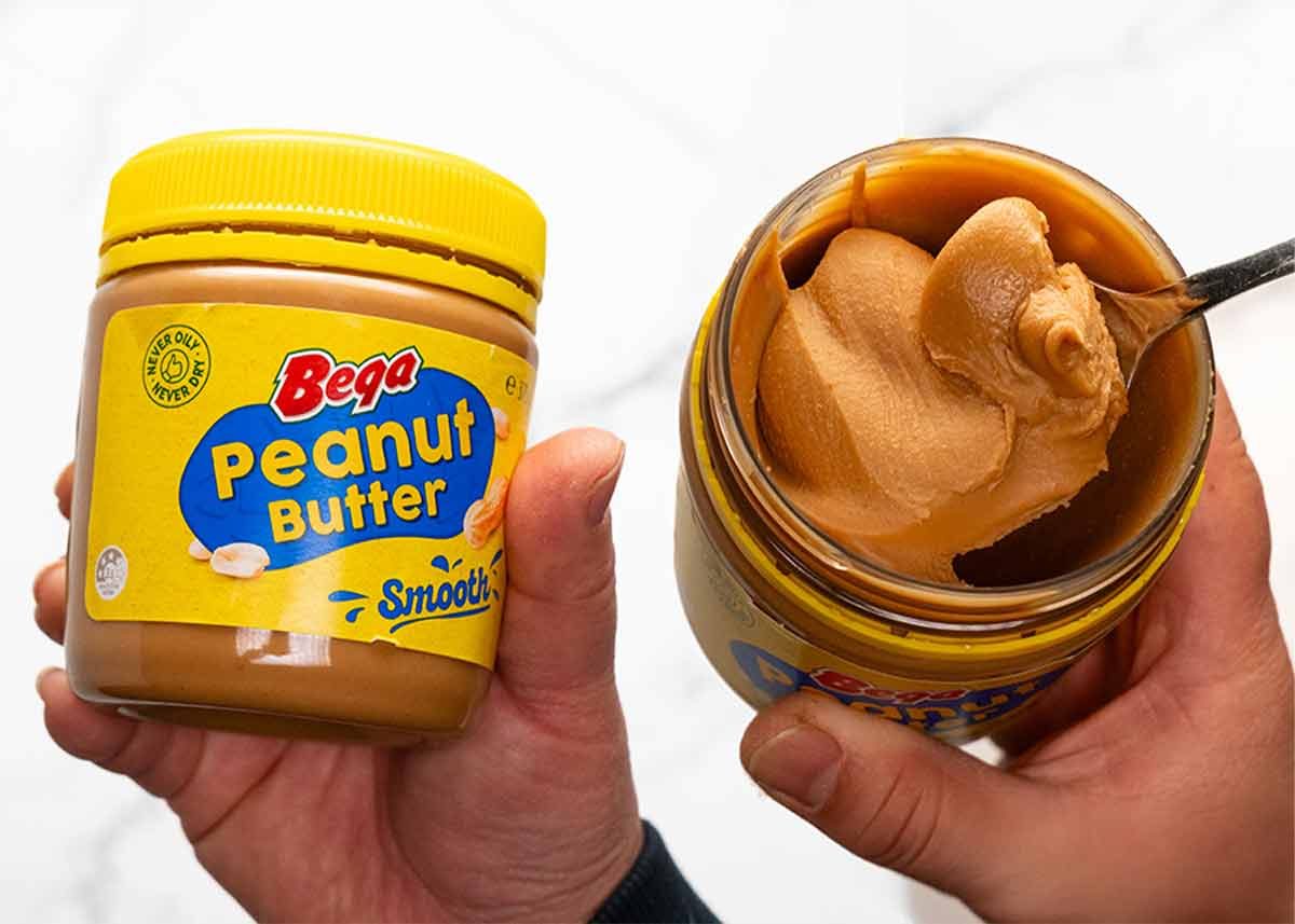 Use regular peanut butter spread, the commercial brands you put on sandwiches which has salt and sugar added, like Bega, Skippy. Natural peanut butter (or pure peanut butter) which is just, as the name suggests, plain peanut butter (plus maybe a pinch of salt), is too runny for this recipe and the flavour is more intense.