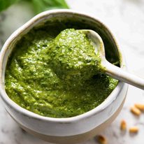 Pesto! Make it the classic way with basil and pinenuts, or any number of other combinations using spinach, kale, rocket/arugula and nuts such as cashews, almonds and walnuts using my pesto formula.