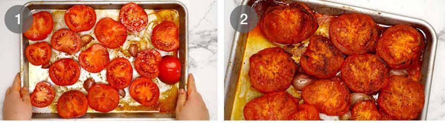 - Roast for 40 to 45 minutes or until there is some charring on the tomatoes (see photos).