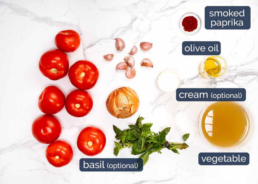 Smoked paprika – Adds lovely earthy, smoky flavour to give this soup a little je ne sais quoi even if your tomatoes are not summer-prime, and even if you don’t have basil (see below). 🙂 It’s widely available at regular grocery stores, sold alongside regular paprika. Substitute with extra fresh basil instead!