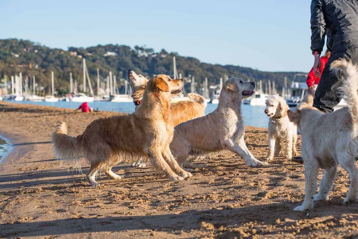 When I’m away, Dozer stays with a Golden Retriever Boarder who treats him as one of her own. He has the run of her house, lies under the table during meal time (clever boy), sleeps in front of the fireplace and knows he’s at the very bottom of the pecking order. 😂 (That’s him on the left)