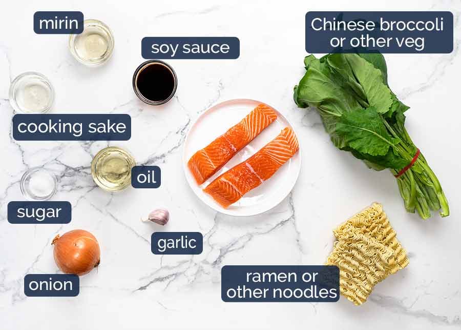 Here’s what you need for this not-authentic-but-totally-delicious Teriyaki Salmon Noodles!