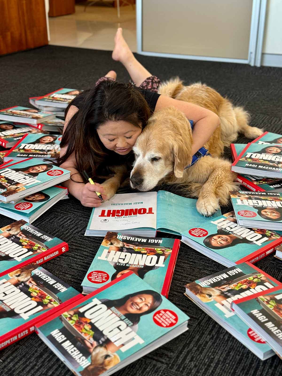 We’re a month away from my new cookbook TONIGHT landing on your doorstep (if you pre-ordered!) and hitting bookstores! The first copies have landed, so this means Dozer’s work schedule is starting to get busy…..