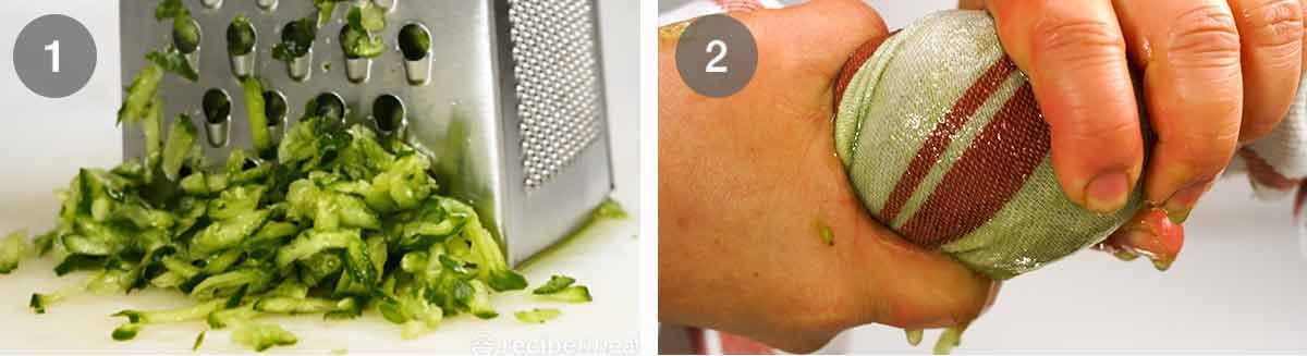 Grate the cucumber using a standard box grater.