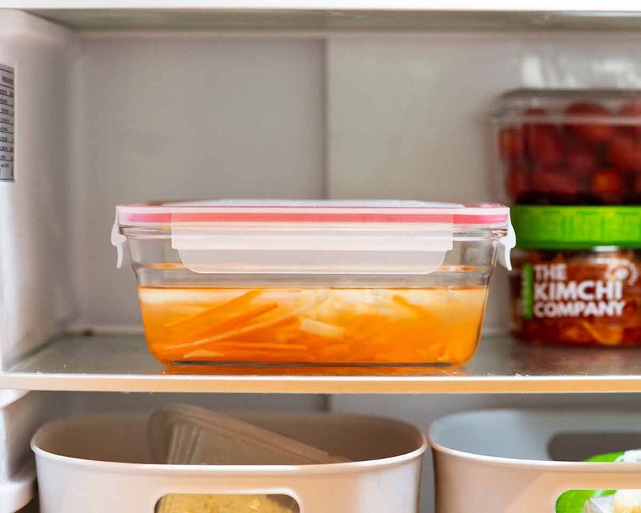 What they taste like – Vinegary but less sharp than typical western pickles (thanks to the rice vinegar), erring more towards sweet and not that salty. Carrot and daikon (white radish) is ideal because they retain a nice crunch for great texture!
