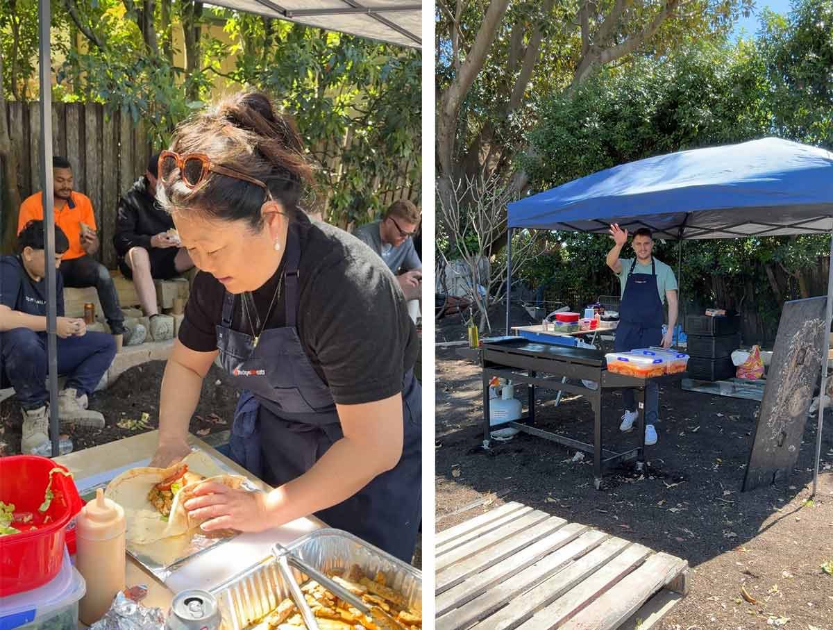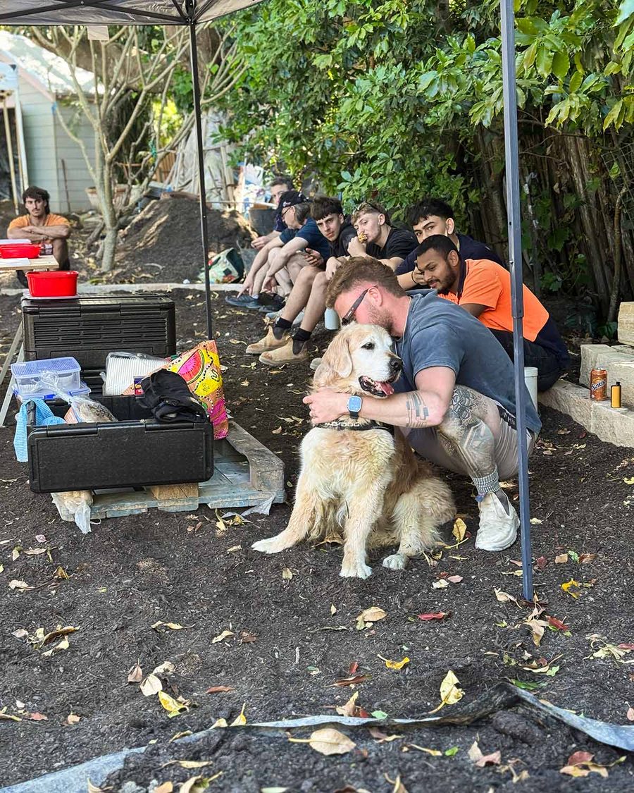 JB and I went to site to do a BBQ lunch for the builders today, trying out an upcoming recipe on them! I took Mr Dozer along. Always cracks me up watching tough tradies melt into puddles over him. 😂 I love it!!