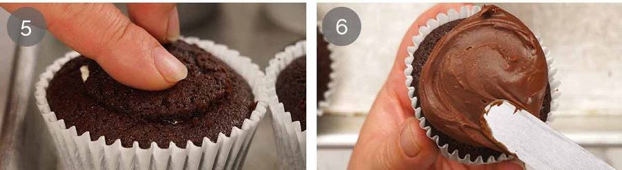 Vanilla Cream Filled Chocolate Ganache Cupcakes