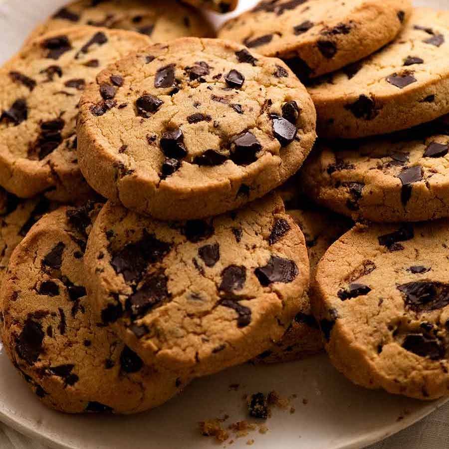 Do not try microwaving the butter - even the greatest experts run a high risk of pockets of melted butter = cookies won't work!😩2. Rice flour - this gives the cookies a slightly more "velvety" mouthfeel even though they are crunchy cookies, which is a distinct feature of the Byron Bay Cookies. Find it in Asian stores and the flour aisle of grocery stores (small box). Also used in Shortbread Cookies (for same reason). Sub with normal flour - cookies are still terrific, texture is just not quite as velvety (but 100% still fantastic - in fact, I made a batch for a friend with no rice flour just a few days ago).Note: If you use the McKenzie's brand (Australia) the rice flour isn't ground as finely as flour so you may notice a faint grit in the cookies. Though actually, most normal people don't notice it! For this reason, I prefer using Asian brands as they don't have this problem. However, the faint grit really is a minor, minor thing and it's 100% worth it for the texture benefit you get in the cookie!3. Chocolate - use any baking chocolate here ie chocolate sold in the baking aisle, intended for cooking. Eating chocolate doesn't hold up in the oven - goes a funny texture. Choc blocks are better quality, but chips will be fine too!4. Chilling dough - this is to make it sliceable, and to stop the cookies from inflating in the oven. If you forget about the dough and it stays in the fridge for way longer, it gets rock hard so leave it out for 20 minutes or so before slicing.5. Switch trays for even cooking - move the bottom tray up to the middle shelf, and the tray on the middle shelf down to the bottom shelf.6. Leftover egg whites – Here’s my list of what I do with them and all my egg white recipes can be found in this recipe collection.7. An original recipe, my copycat of the Byron Bay Cookies by reference to the ingredients on the packet. It's as close as I can get - pretty close!8. Nutrition per cookie: