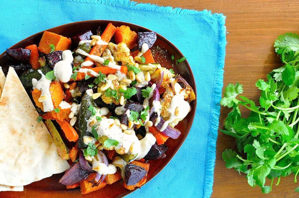 Middle Eastern Roasted Vegetables with Tahini Sauce