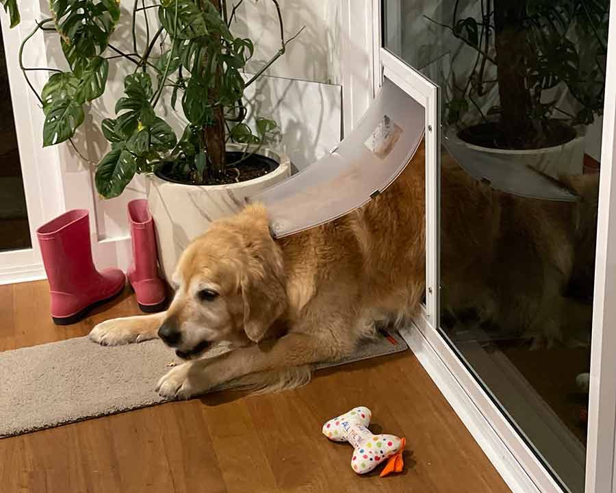 The doggie door at the place I’m renting is a little too small for Mr Dozer….😂